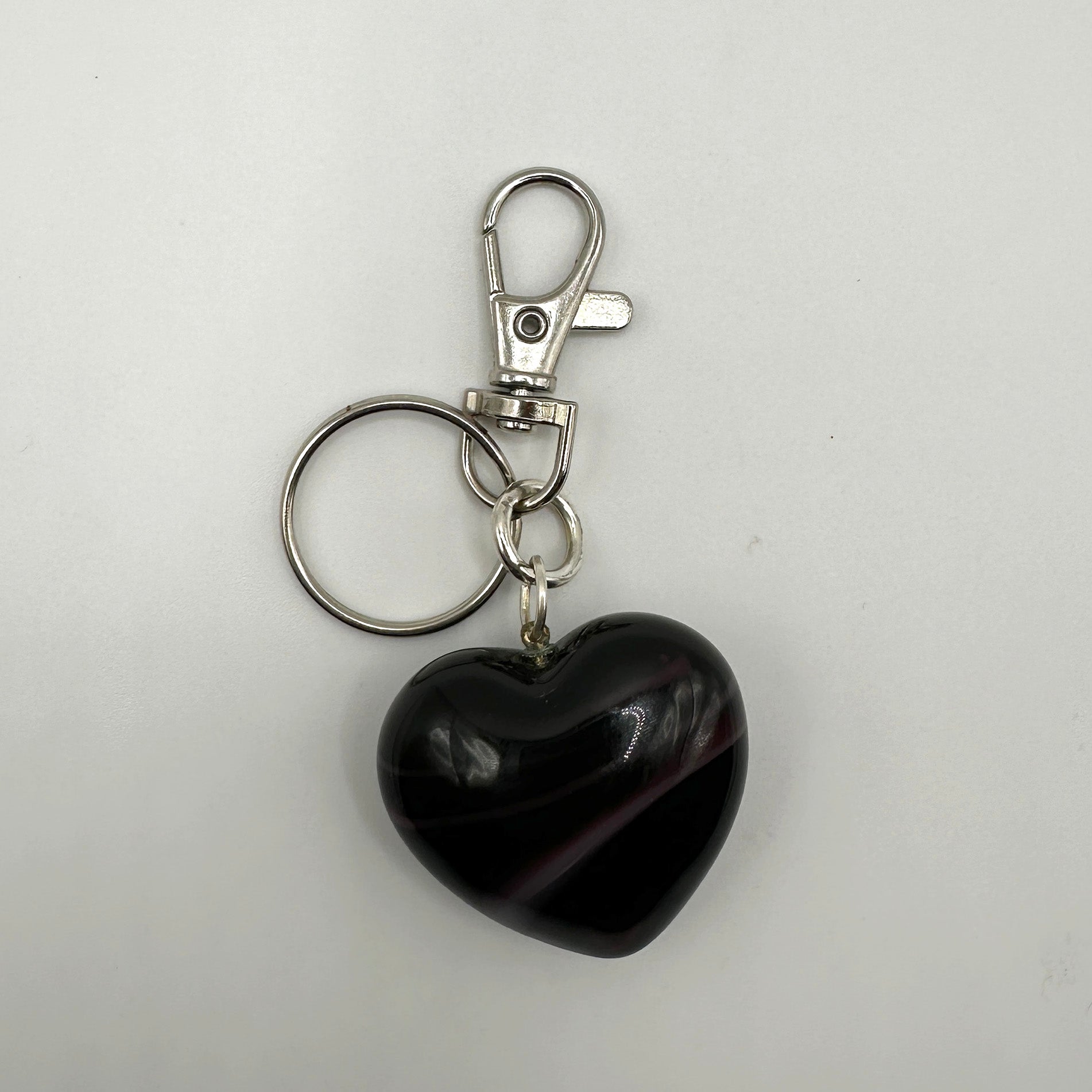 large vintage blown glass heart bag charm with keychain