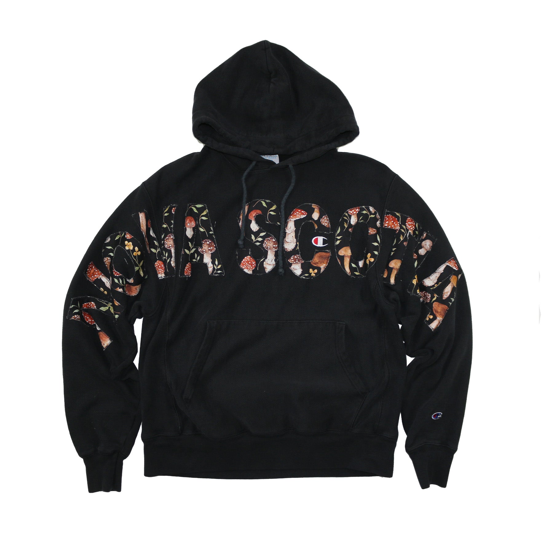 nova scotia applique sewn on a champion hoodie. made with second hand materials