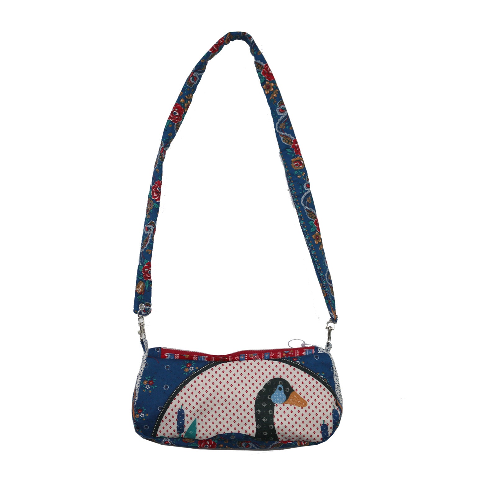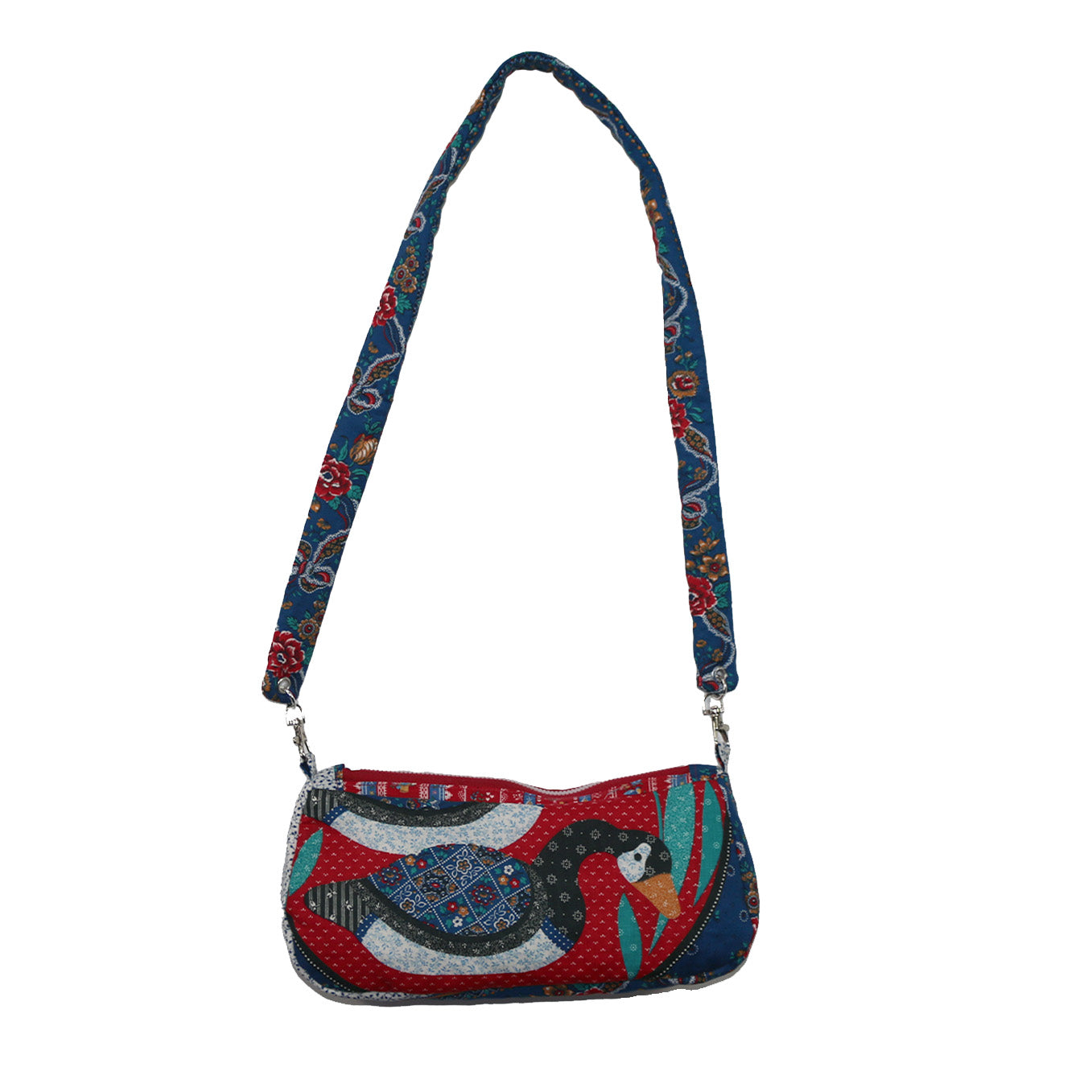 one of a kind mini bag made with recycled materials. fully lined with clip on over the shoulder strap