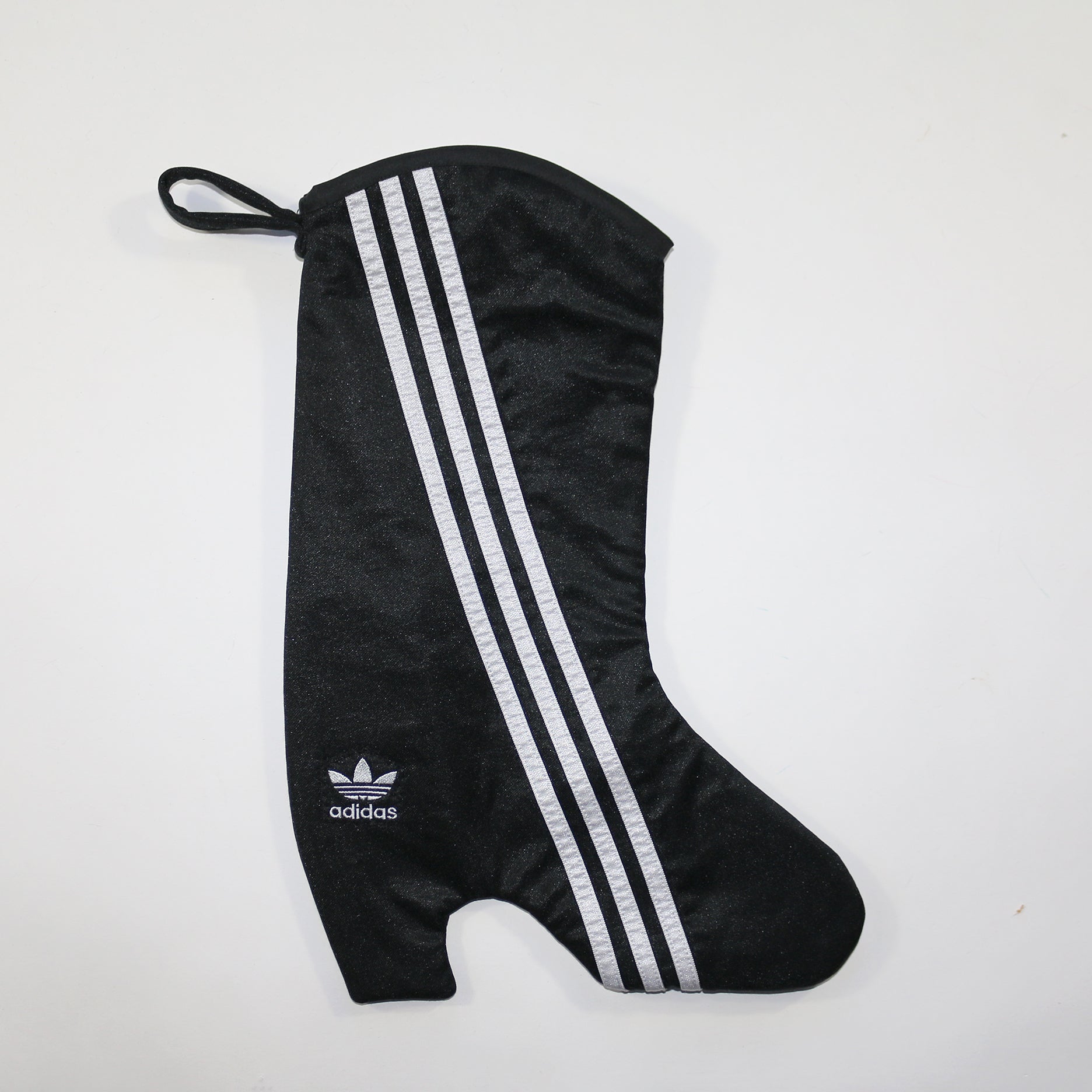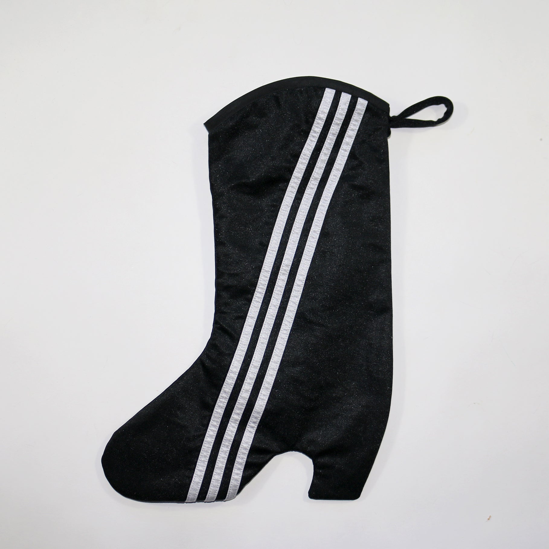 one of a kind, handmade stocking crafted with recycled materials. fully lined, with a hang tab on the back of the boot.