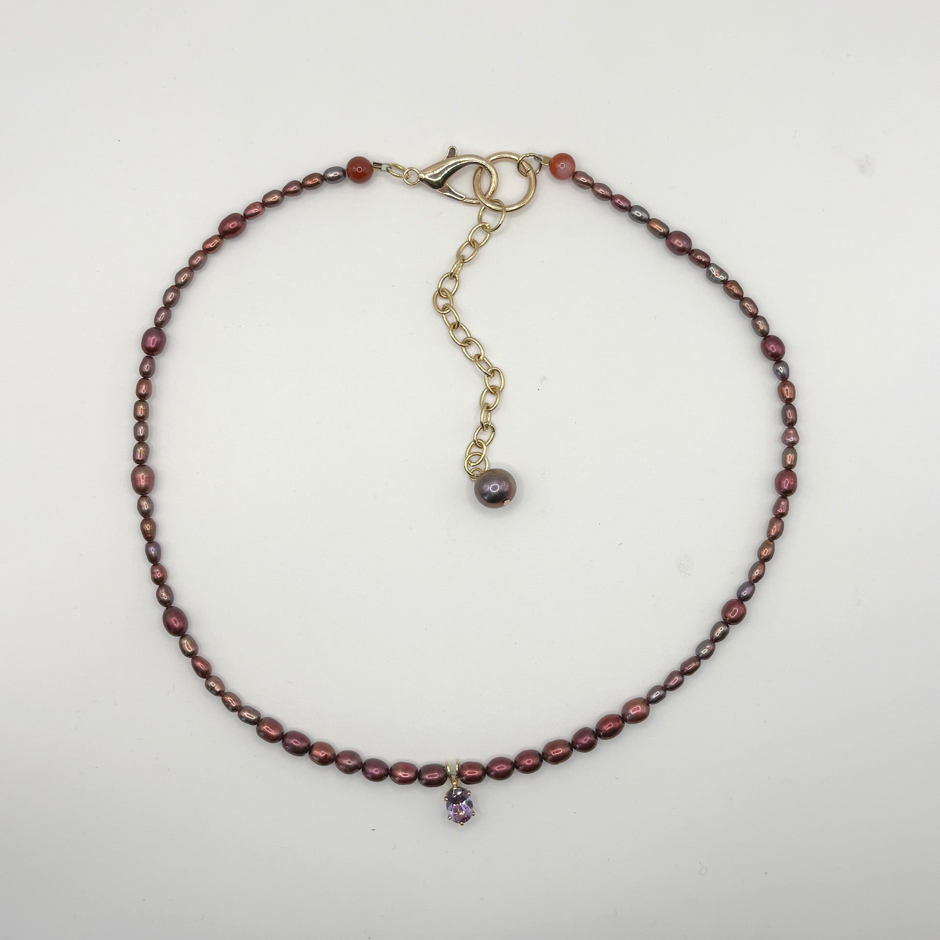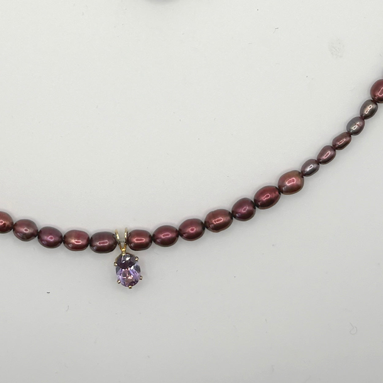 freshwater pearl necklace with vintage gemstone charm