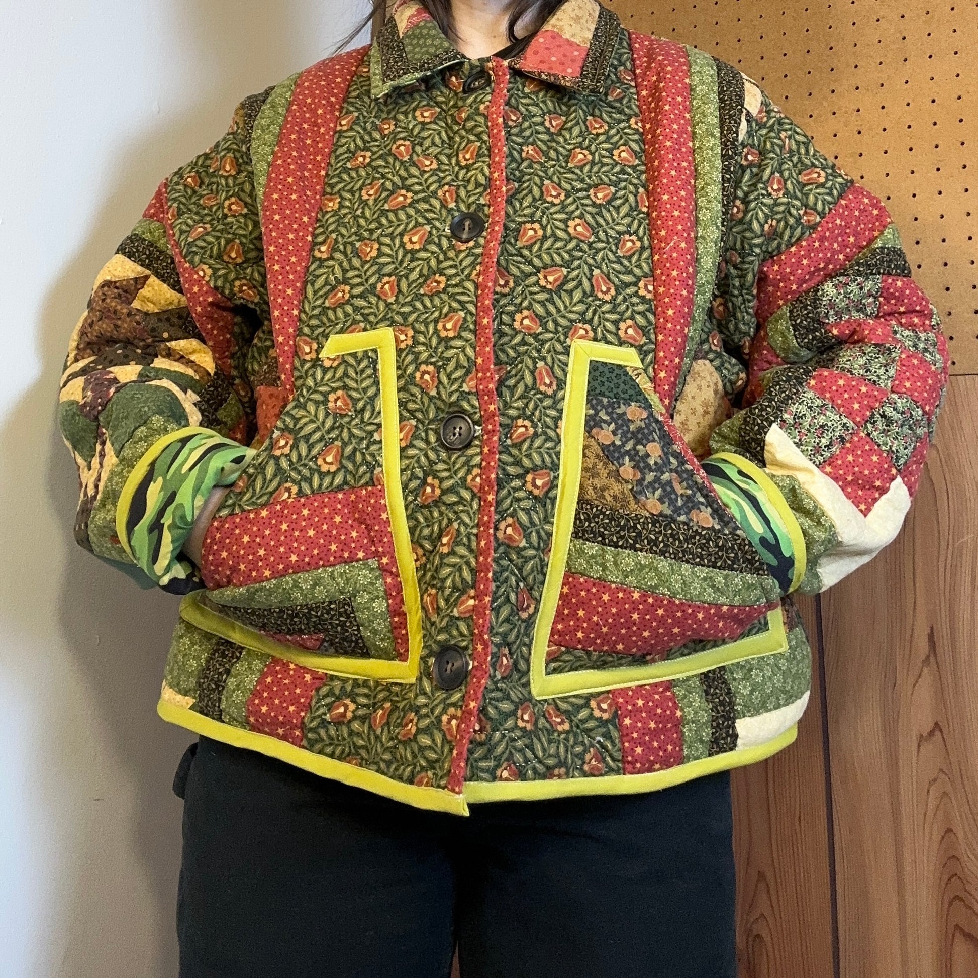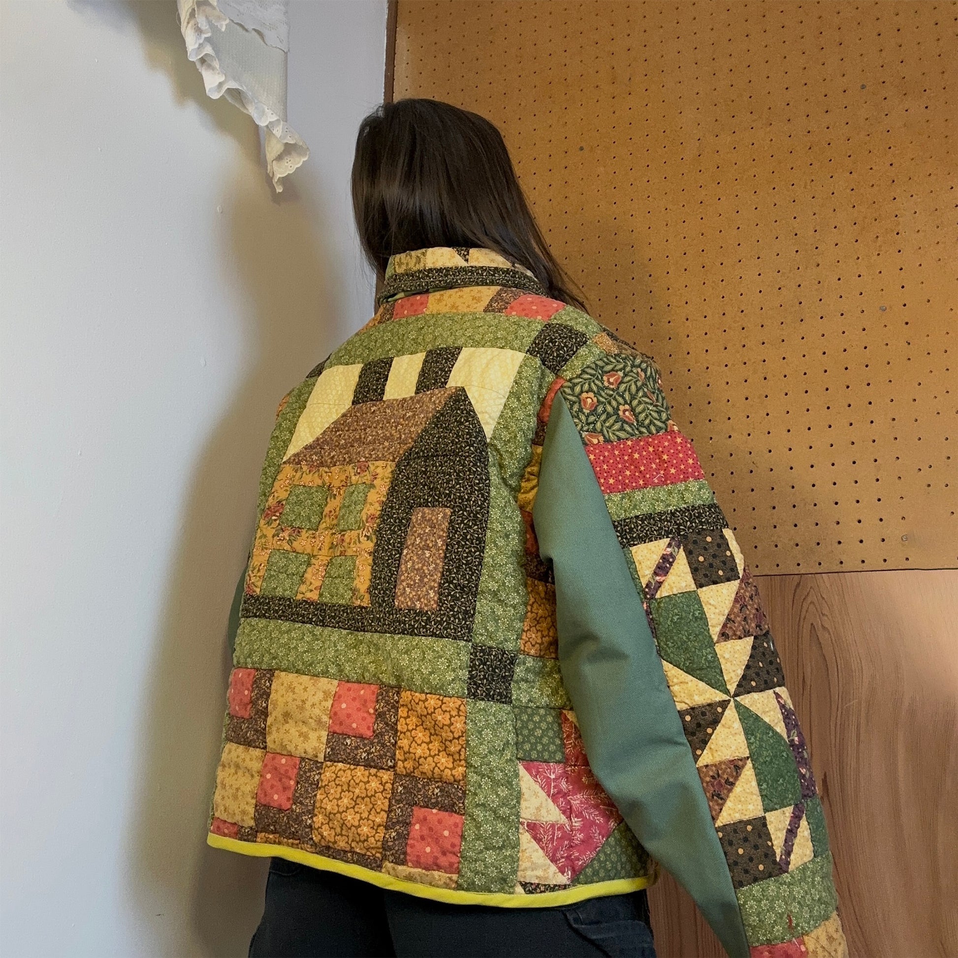 one of a kind chore coat, handmade with a vintage quilt.