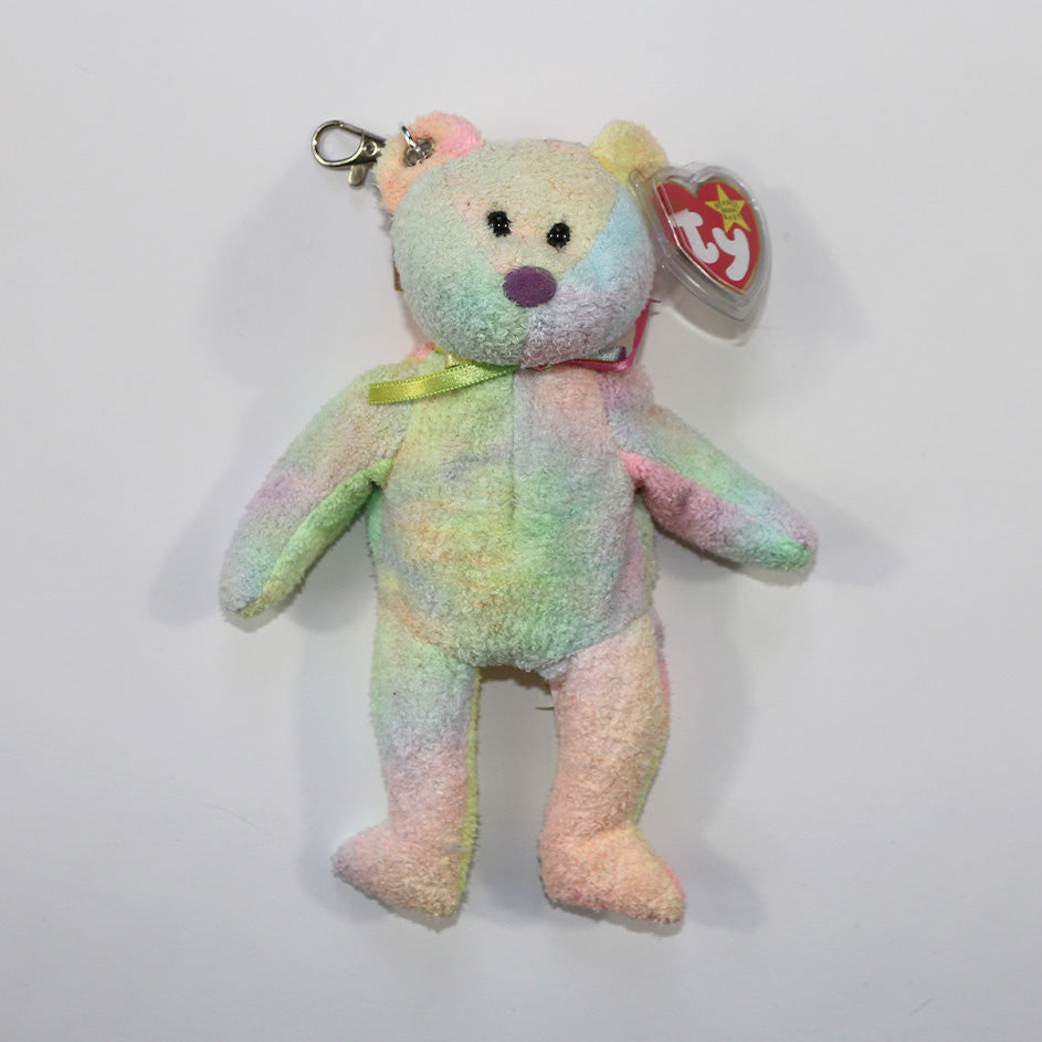 upcycled clip on bag charm made with a deadstock 90s beanie baby.